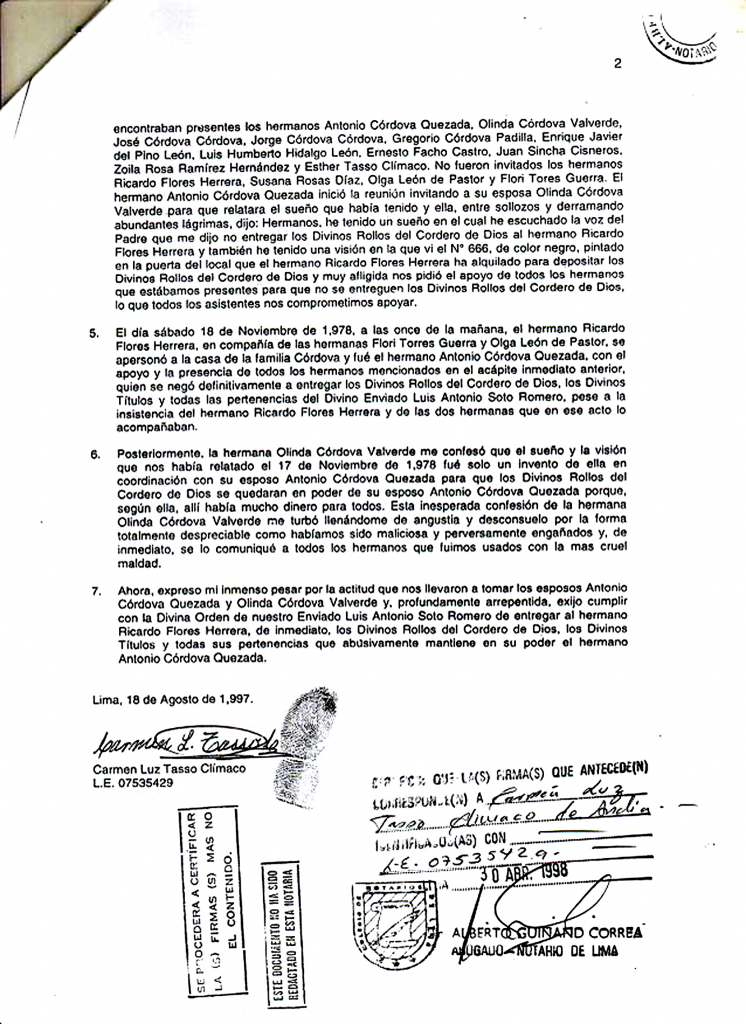 — Alfa y Omega: Todos los rollos marcan Perú. El Padre, de acá saca la revelación, de acá, ya lo están viendo ya…