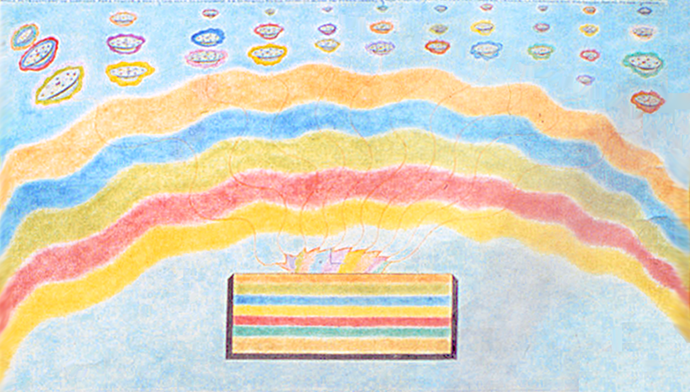 Sí hijito; el dibujo celeste enseña infinitas leyes en los cielos; los cielos se expanden haciendo madurar a los mundos que se encuentran en él; cada cielo es una caloría solar que tiene dentro de sí a otras infinitas calorías; cada cielo tiene un sol jerárquico que transmite sus leyes a otros soles; y todos alaban al Padre; conocen a los enviados del Padre; porque lo que es del hijo solar, es del Padre; cada cielo forma parte de una galaxia; una galaxia posee infinitas clases de cielo; cielos microscópicos y gigantescos; los microscópicos poseen mundos iguales; y los cielos gigantescos poseen mundos colosales; vuestro mundo polvo pertenece a cielo microscópico; con sol enano amarillo-pálido; vuestro cielo pertenece a la galaxia Trino; una galaxia casi desconocida en el universo; solo conocida por algunos padres solares que fueron profetas en la Tierra; todos los que han sido criaturas terrestres, casi no los conocen; todo desconocimiento que se tiene de sí mismo, se debe a lo infinito del universo nadie es más importante que nadie; solo el Padre lo es; los cielos tienen numeración galáctica; vuestro cielo es un tercer cielo en molécula expansiva; quiere decir que cada molécula de vuestro planeta, llegará a tener un cielo; porque nadie es desheredado; ni la molécula de la materia, ni la virtud del espíritu; todos se hacen su propio cielo; han nacido para ganárselo; cada cielo posee sus propias leyes; porque de todo hay en la viña del Señor; todo existe en la creación; cada cielo tiene sus obligaciones en la creación; y siempre por toda eternidad, se reúnen las jerarquías solares con el Padre Jehova; he aquí el significado de la última cena; una mesa que tiene la forma del Arca de las Alianzas; con 12 padres solares; porque todo humilde es grande en el reino de los cielos; y todo lo que ocurrió en la última cena, es una réplica de lo que ocurre en los cielos; lo de arriba es igual a lo de abajo; en el dibujo se ve un arca con colores horizontales; cada apóstol pertenece a un cielo de color; y cada uno tiene su propia filosofía; su propia individualidad y su propia fe; es por eso que la última cena es inmortal entre todas las cenas; allí lo que se dijo, fue dicho en infinitos cielos y mundos; porque la trinidad solar está en todas partes; y un mandato del Padre Jehova, no es únicamente para un mundo; lo es para infinitos mundos; cuyo número es como el número de arenas que contiene un desierto; nadie es único ante el Padre; porque su amor es universal; los cielos poseen comunicaciones como las poseéis vosotros; lo de arriba es igual a lo de abajo; y los platillos voladores son una de las infinitas formas de comunicación; la telepatía universal es una de las más comunes; tal como tú la posees hijito; todas las comunicaciones y escenas de colores que ves, constituye la telepatía universal; en tu mundo nadie la posee; es por eso que nadie escribirá una doctrina como la tuya; en todo existe un primero; por el fruto se conoce el árbol; lo que es del hombre, del hombre es; lo que es de la trinidad solar, de la trinidad es; los cielos poseen una geometría que siendo uniforme, es relativa a las evoluciones; la geometría de los elementos de sus mundos, se amolda por las alianzas que se verifican en los cielos de más jerarquía; un padre solar obedece a otro de mayor sal de vida; de mayor conocimiento y sabiduría; y éste a otro; el mando jerárquico no tiene fin; y la última palabra de una ley, es el Padre Jehova; que muchos llaman Padre Eterno; cada cielo crece como crece una semilla; y existe verdadera competencia entre los reinos de los cielos; una competencia que es y será eterna cada cielo trata de ser el primero ante el Padre; los colosales soles, juegan como niños para complacerle; porque saben por sabiduría, que el Padre es alegre como un niño; y quien no viva con carácter de niño, no entra a su morada; y su morada está en todas partes; porque Dios está en todo y en todos; cuando un padre solar requiere de su divina presencia, hace un llamado telepático; y el Padre se le aparece en forma instantánea; su forma de aparición es infinita; siempre escoge la forma más humilde; y muchas veces cuando su libre albedrío lo quiere, el divino Padre se adelanta al llamado telepático; y sorprende al que lo necesita; de preferencia está con los más humildes; porque ellos son los primeros en el reino de los cielos; una de las historias más fascinantes y eterna, es aquella en que los padres solares, se disputan la primicia de quien vio al Padre mayor número de veces; y la forma que vestía cuando le vieron; esto no tiene fin; porque el Padre está en todas las formas; está en todas partes; en las formas que se conocen y en las desconocidas; esta divina competencia es eterna; ella existe desde que nació el universo material; y en los otros infinitos que estuvieron primeros; porque lo que vosotros llamáis materia, es solo un comienzo de algo primitivo; toda vuestra galaxia Trino que no tiene fin, nadie la menciona en el macrocosmo; porque saben que el universo no tiene fin; y no se preocupan por el infinito; porque viven la eternidad del mismo; ven maravillas a cada instante; y a cada instante una eclipsa a la otra; toda gloria es relativa aunque sea eterna; solo el Padre es gloria eterna; porque es Creador de todo cuanto existe; los cielos crecen y no tienen límites; y a la vez lo tienen; el límite les dura un instante; porque la velocidad de expansión de los cielos, es algo inaudito; no cesará jamás; solo el Padre puede cortar la expansión; tal cosa sucedió con el demonio; fue cortado y echado fuera del reino del Padre; pasó a ser tinieblas del macrocosmo; todo aquel que es cortado, por causa de violación es; así les sucedió a los malditos faraones; fueron sacados de la Tierra por empezar a esclavizar a sus criaturas; muchos esclavizadores ha tenido el mundo; y casi todos esclavizan por el poder; por ambición; por codicia;