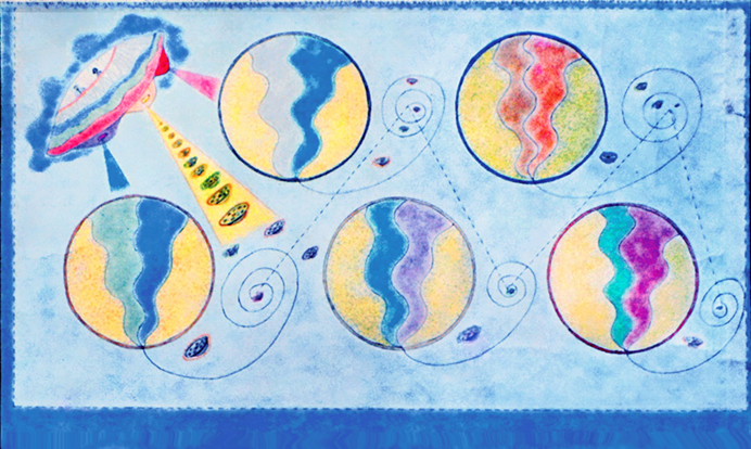Sí hijito así es; este dibujo celeste tiene la forma de la televisión solar; desde el reino de los cielos gigantescas pantallas de televisión de fuego, observan las moléculas de los mundos; y sus criaturas; como lo ves a diario y a cada instante, son de colores vivientes; se asemejan a pantallas de cine; y tienen poder expansivo y eterno; en una de estas pantallas de televisión solar, fue observado el principio de la Tierra; uno de los infinitos principios de planetas; porque el universo es infinito y nadie es exclusivo; nadie es único; cuando observáis el universo, veis que hay otros; otros astros; y la grandeza de la creación os empequeñece más; es una prueba silenciosa de la existencia de otros mundos; vosotros la pedisteis y se os concedió; la pedisteis como alabanza a la fe de vuestro espíritu; por lo tanto, todo aquel que habiendo visto la existencia de otros astros y no creyó que muchas moradas planetarias tiene el Padre, no entra al reino de los cielos; puesto que los negó; los cielos están en todas partes; en cualquier punto del universo; y vosotros mismos, sois un pedazo de cielo; porque cada uno se hace su cielo; en el dibujo celeste se ve cómo obran los querubines en la materia; ellos viajan en platillos voladores de microscópicas dimensiones; se introducen en criaturas y moléculas; y esto viene sucediendo desde el principio de vuestro mundo; ningún microscopio de vuestra ciencia, los podrá ver; porque están en otras dimensiones; el microscopio terrestre no sale de su dimensión presente; aunque descubra moléculas trillones de veces pequeñas; todo presente tiene su mundo microscópico y sus límites; es la ciencia la que está limitada, y no el elemento; los mismos elementos que os rodean, darán trabajo a otras futuras ciencias; y la vuestra pasará a ser una ciencia primitiva; y volverá al polvo del olvido; con la llegada del primogénito solar Cristo al mundo, vuestra ciencia habrá llegado a su fin; porque escrito está, que con su divina sabiduría, traerá una ciencia brillante como un sol; una sabiduría que asombrará al mundo; porque nunca jamás, se vio ni se verá cosa igual en la Tierra; de su sabiduría nacerá la ciencia omega; la ciencia que quedará en la Tierra; vuestra ciencia no queda porque es violación viviente; para nada vuestra ciencia materialista alfa, tomó en cuenta al Creador de la vida; vuestra ciencia es demoníaca; porque es ciencia de muerte y destrucción; ¿Puede un terrenal decir lo contrario? Ciertamente que ningún creador de ciencia de muerte, entrará al reino de los cielos; el Creador os da vida e inteligencia, para perfeccionar lo que vosotros mismos prometisteis en el reino de los cielos; no para destruir su propia obra; solo Satanás se destruye a sí mismo; la ciencia sin humildad, es ciencia muerta; porque no entra en la gloria del Padre; ningún sabio de vuestro mundo ha entrado al reino; ni ninguno entrará; y solo ganarán en la medida que engrandecieron sus ciencias sirviendo al humilde; y no a los demonios de la destrucción; quien mata a espada, muere a espada; quiere decir que quien se engrandece en filosofía de guerra y matanzas, sufre la misma ley en lejanos mundos; y debe pagar hasta el último poro de carne, que por su culpa, dejo de existir antes de tiempo; las ciencias son juzgadas como es juzgado vuestro espíritu; ciencia y espíritu poseen libre albedrío; y a ambas escucha el Padre; toda ciencia salida de toda inteligencia, es una alianza entre ella y vuestras virtudes; vuestro pensar es dividido según vuestro mal; y todo mal comienza cuando la criatura no cumple el mandato del Padre; no existe mal mayor; porque lo del Padre no tiene límite; se puede ser el sabio más sabio entre los sabios y si se ha violado la ley del Padre por un tiempo de un segundo o menos, no se entra al reino de los cielos; así es la perfección del Padre; que está en todo; una perfección que fue pedida por vosotros; pues prometisteis al Padre, cumplir en la vida con la más elevada moral, que vuestra mente pueda imaginar; esto es perfección en los mandamientos; pues no existe ni existirá mayor moral, que los mandamientos vivientes de Dios; todos los que están en la gloria de su reino vivieron tal moral; no se conoce otra entre ellos; ninguna moral de vuestro materialismo se conoce en el reino; porque se os dio la única; la del Padre; conocida arriba y abajo; todo el universo en sus mismas moléculas, sabe de la moral del Padre; el que vosotros no lo comprendáis, no les quita el derecho a poseer lo que vosotros poseéis; toda justicia mental parte reconociendo en otros, lo que se posee en sí mismo; esa es la psicología de los mandamientos; la materia nace con los mismos derechos con que nacéis vosotros; nadie es menos ante el Padre; ni la materia ni el espíritu; toda molécula es tan importante como cualquier espíritu; pues ambos partieron juntos a la vida; y retornan juntos al Padre; la perfección no tiene límites; porque no los acepta; no olvidéis que todo es viviente y todo opina en el reino; esta revelación es la suprema para vosotros; porque en ella está el juicio para todo ser pensante; para todo el que es de carne y es materia; porque todos os transformáis en espíritus en el reino; conservando la forma que tuvisteis en un lejano planeta; la materia que os acompaña en la vida, no está con vosotros por estar; está porque así lo pidió en el reino; y todos los que son, son porque lo pidieron; pedir es nacer a nueva existencia; tal como un pedir en la Tierra, marca un hecho en vuestro destino; se pide arriba y se pide abajo; la materia nace y se desarrolla por cualidades y calidades; los platillos voladores dan instrucciones a los querubines; tal como mi hijo primogénito, las dio a los vientos para que se calmaran; he aquí la causa de su poder espiritual sobre la materia; una revelación que causará asombro y maravilla; porque será demostrado; nada es imposible para el que por una s