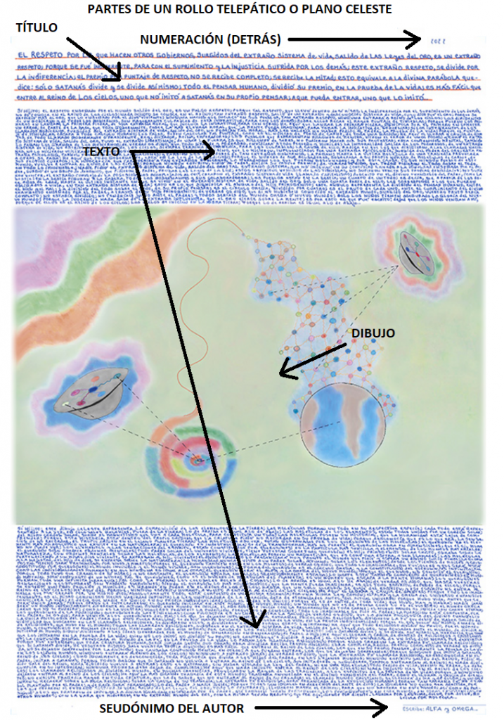 10,000 ROLLOS DEL CORDERO DE DIOS.- También llamados Planos Celestes o Rollos Telepáticos, son la materialización de la visión viviente de Juan mencionados en Apocalipsis 5 como: Los Rollos y el Cordero. Estos rollos, escritos en papel fino o cartulina de aproximadamente un metro de largo, y que contienen o no dibujos, explican todas las cosas, tanto de la Tierra como fuera de ella.