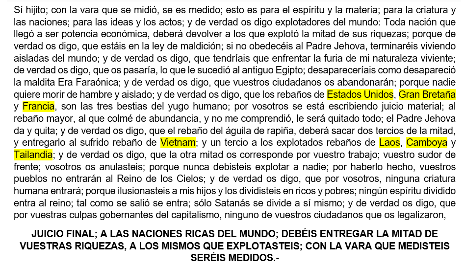 JUICIO FINAL; A LAS NACIONES RICAS DEL MUNDO…