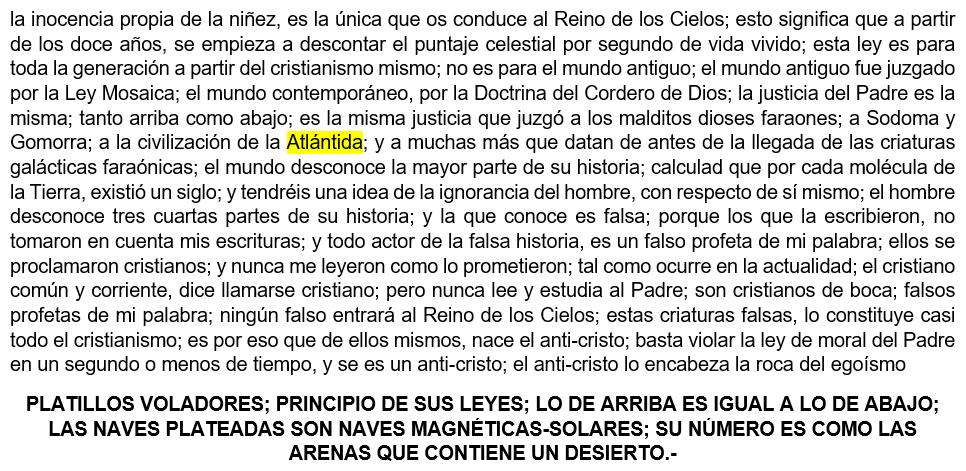 Mención de La Atlántida en fragmento del rollo: PLATILLOS VOLADORES; PRINCIPIO DE SUS LEYES;…